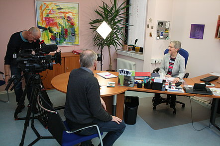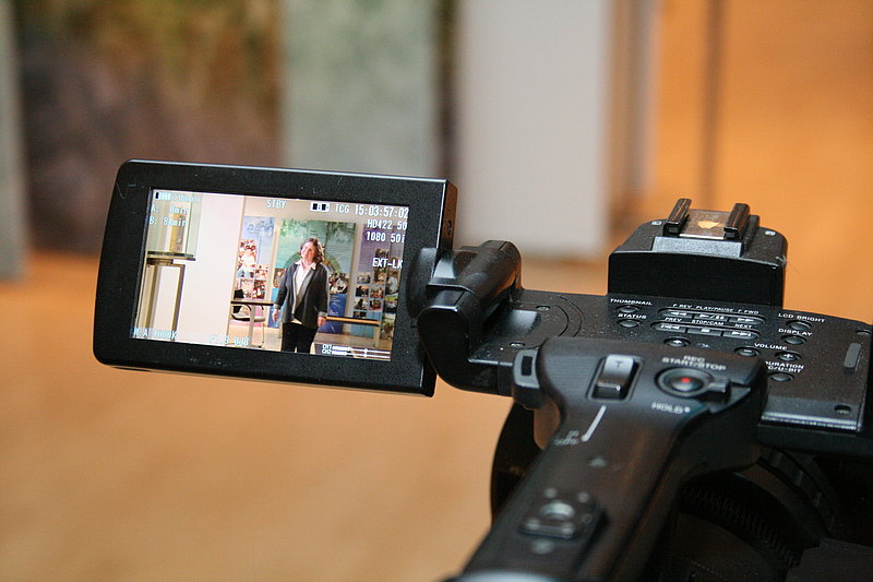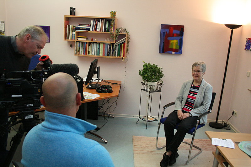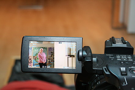 Ein Blick auf das Display der Kamera: Veronika Sauer spricht über ihre Entscheidung sich den Waldbreitbacher Franziskanerinnen als Assoziierte anzuschließen.