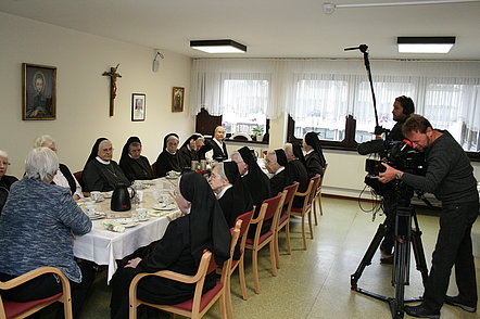 Schwester Gerlinde-Maria Gard, Mitglied der Ordensleitung, erläuterte vor der Kamera, dass sich seit 2009 interessierte Laien mit einem Versprechen an die Gemeinschaft binden können.