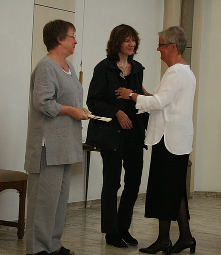 Nach dem Versprechen gratuliert Schwester Edith-Maria (rechts) den beiden Assoziierten Margit Haas (links) und Renate Knoepffer.